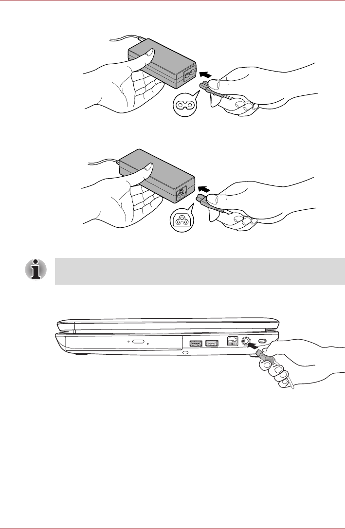 Figure 3-1 Connecting the power cord to the AC adaptor (2-pin plug)