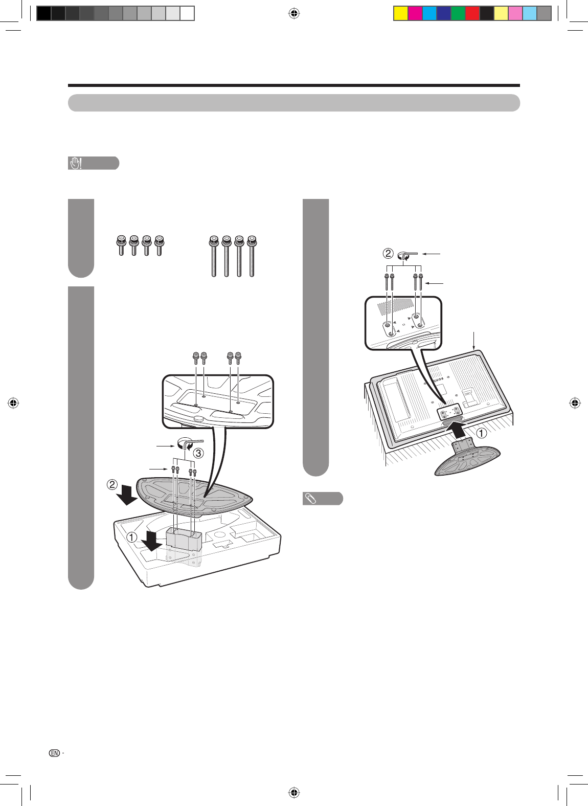 • Be sure to follow the instructions. Incorrect installation of the stand may result in the TV falling over.
