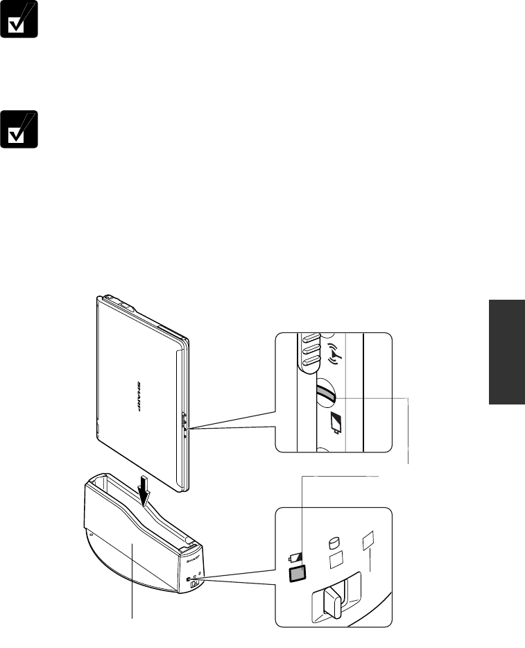 6. Insert the MM series into the connection cradle with its left side downward so that