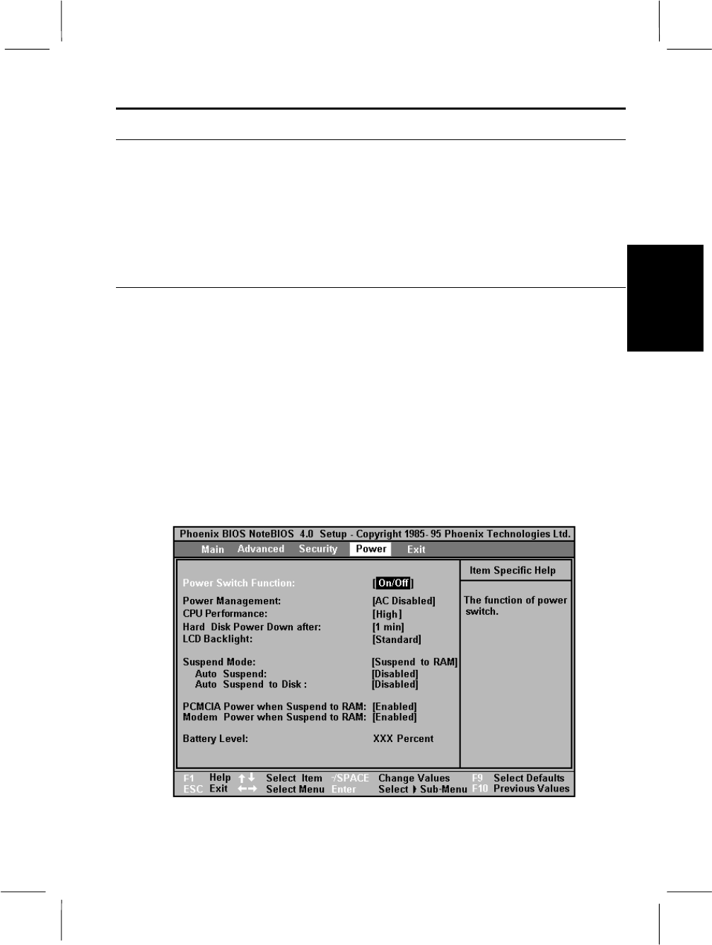 Utility. Power settings allow you to control current drain by peripheral devices and