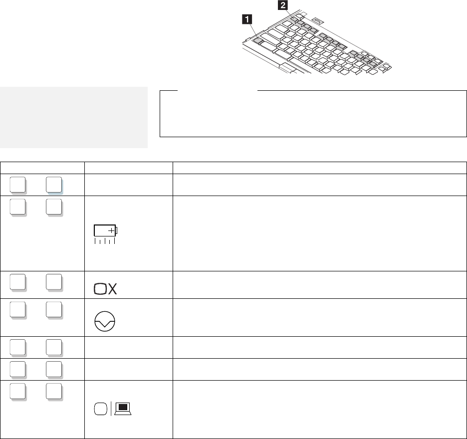 Fn key 1 ; then press the appropriate function key 2 .