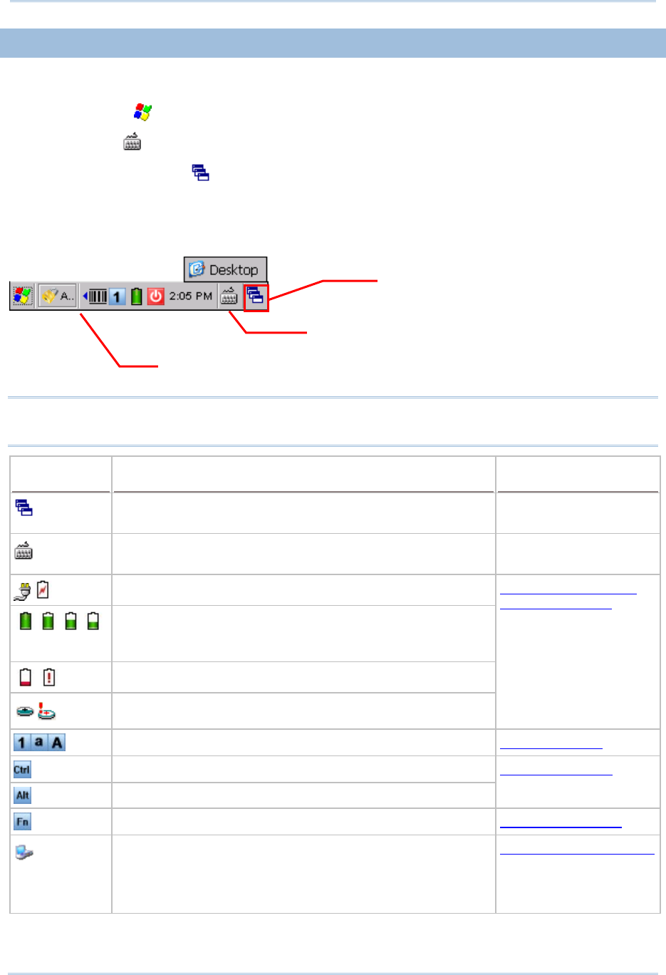 Status icons for various connections, minimized program windows, and so on.