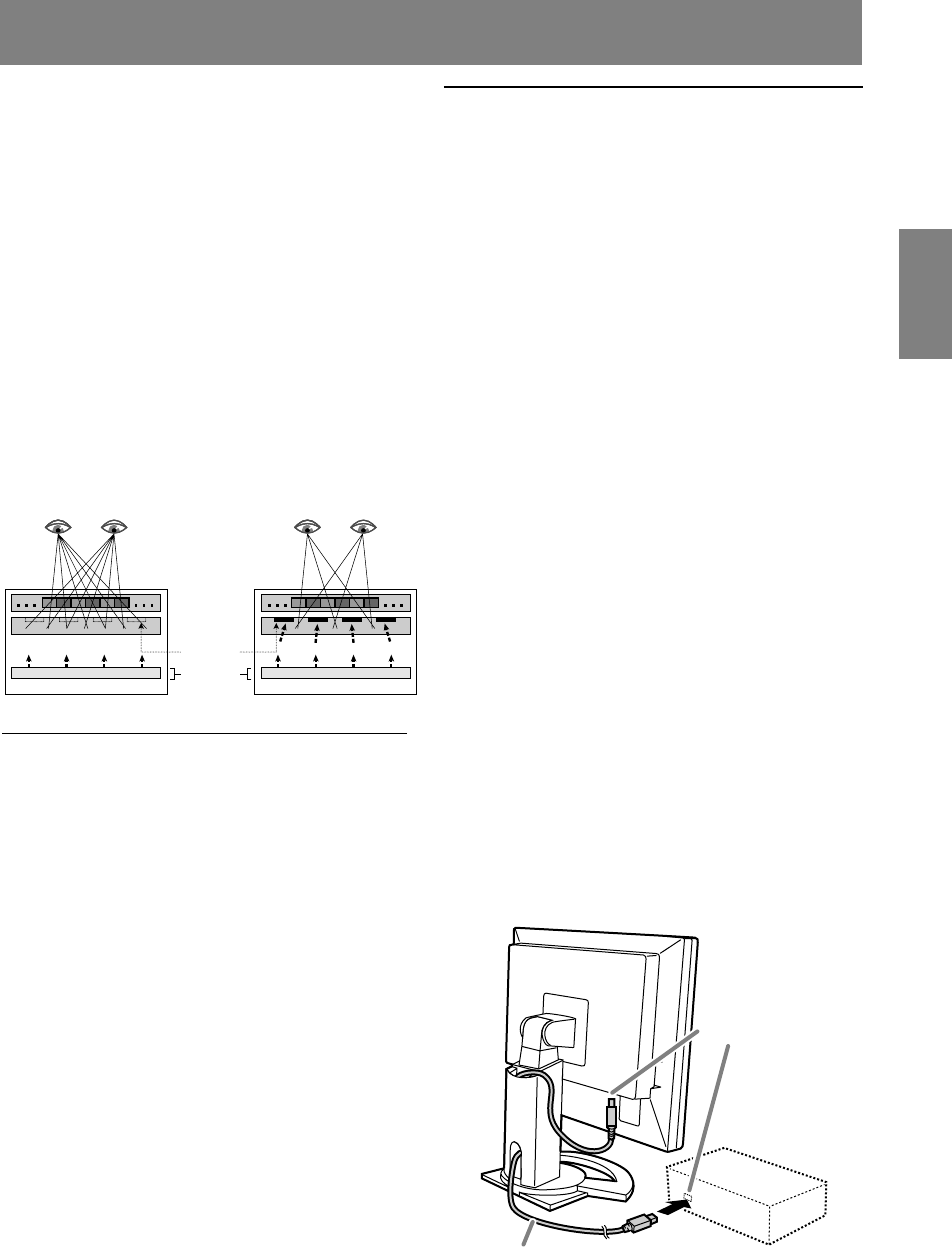 Im 3D-Modus teilt die Parallaxenbarriere das Licht