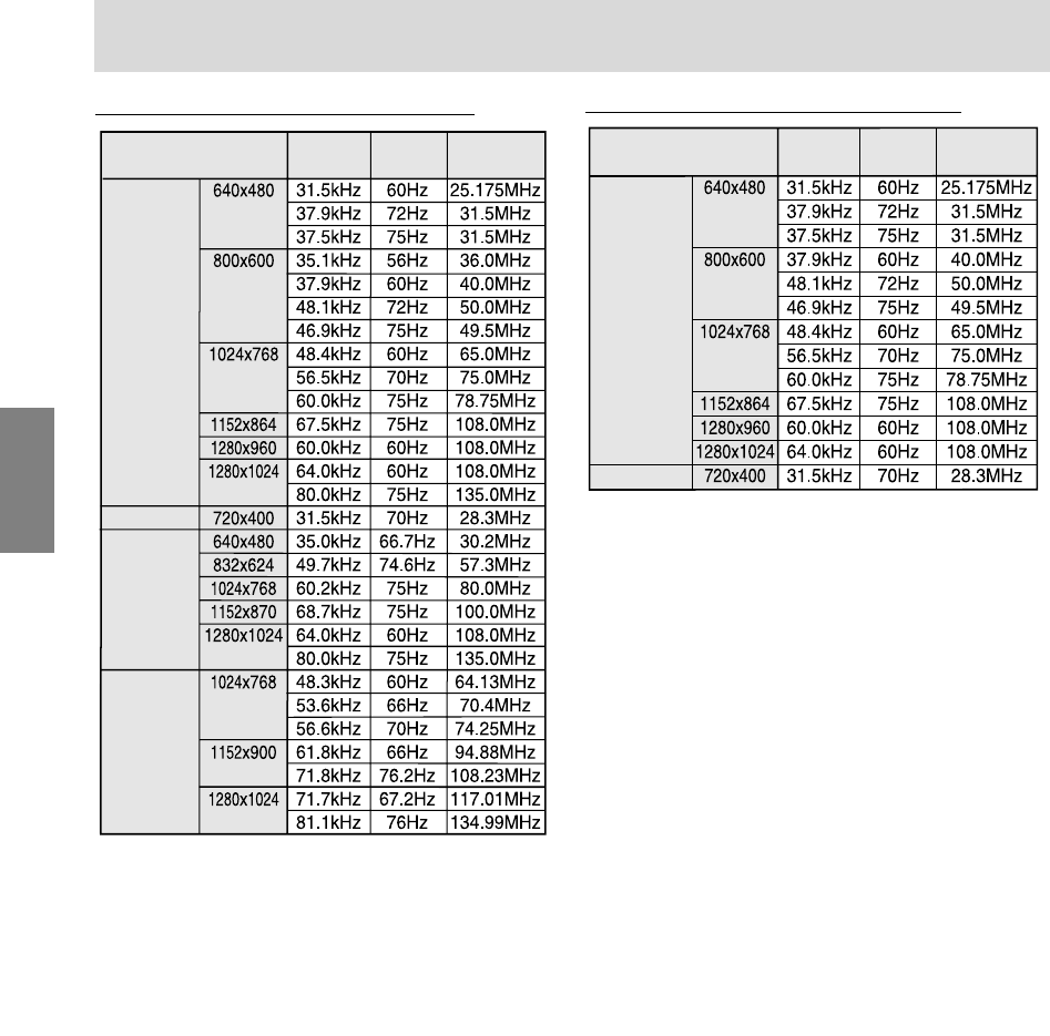 - Les fréquences pour les séries Macintosh et Sun