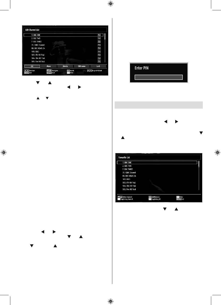 You can set various channels as favourites so that •
