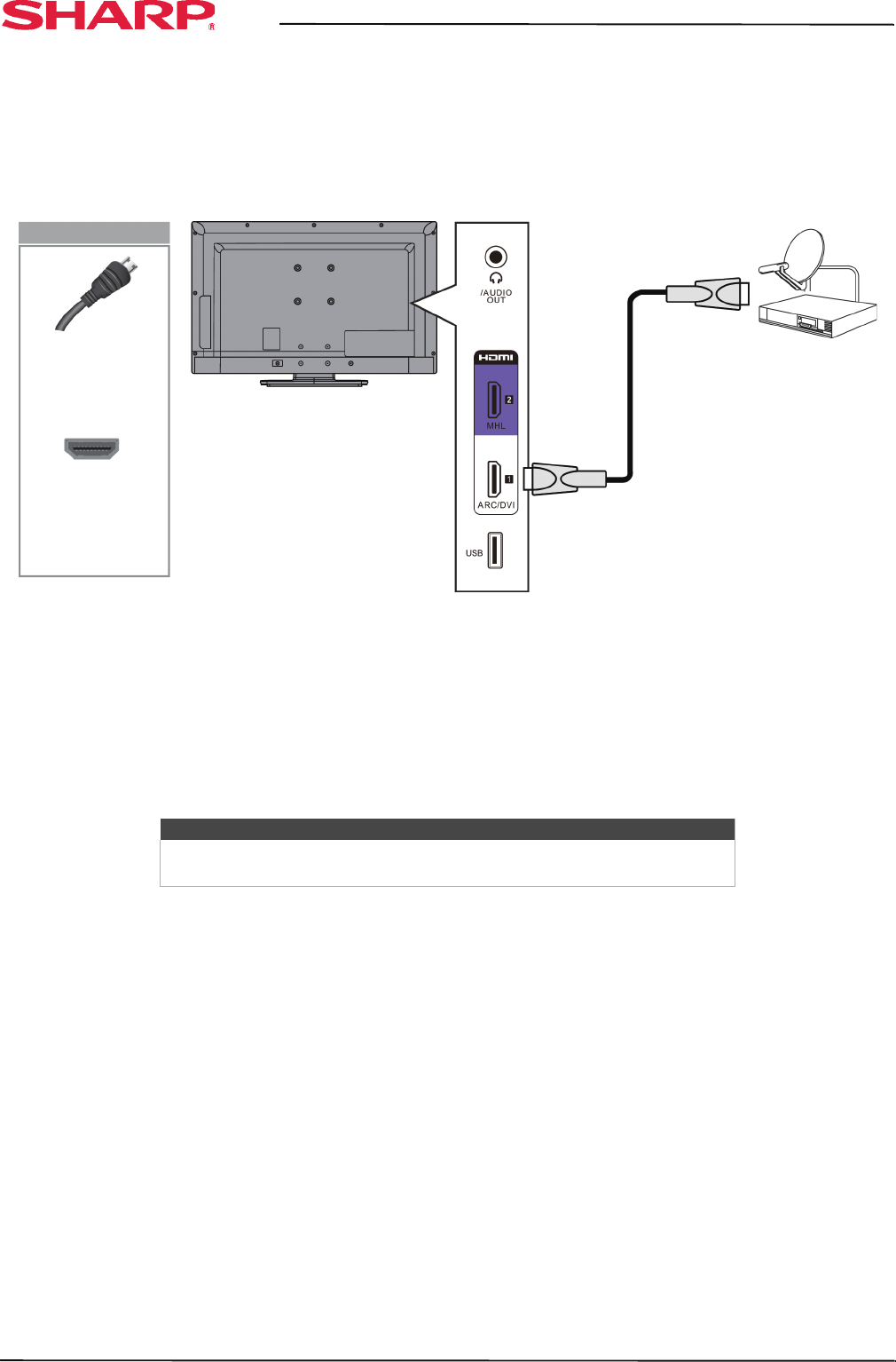 3 Connect an HDMI cable (not provided) to one of the HDMI jacks on the side of your TV and to the HDMI OUT
