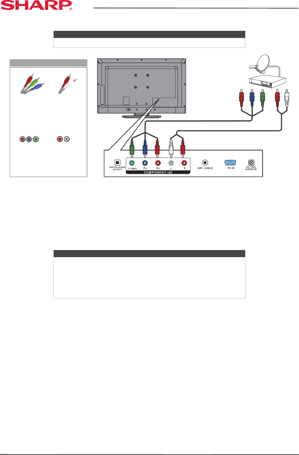 To connect a cable or satellite box using component video: