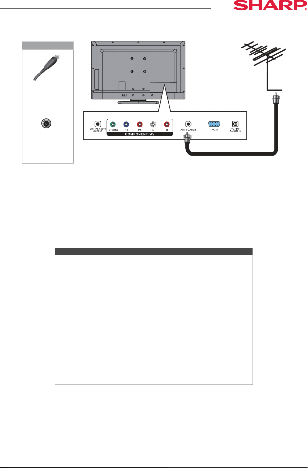 2 Connect a coaxial cable (not provided) to the ANT/CABLE jack on the back of your TV and to the antenna or