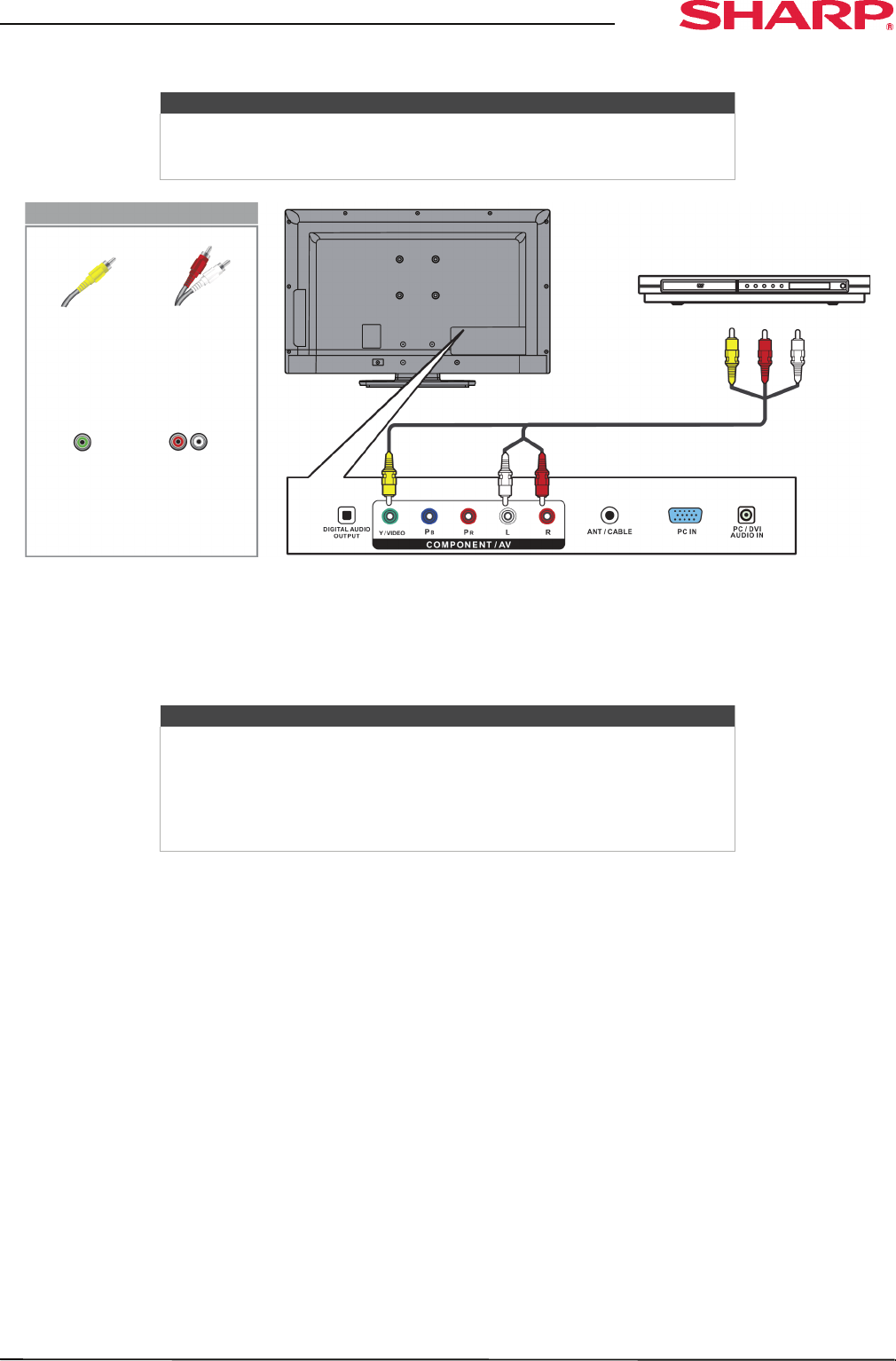 2 Connect an AV cable (not provided) to the COMPONENT/AV Y/VIDEO jack and L and R audio jacks on the back