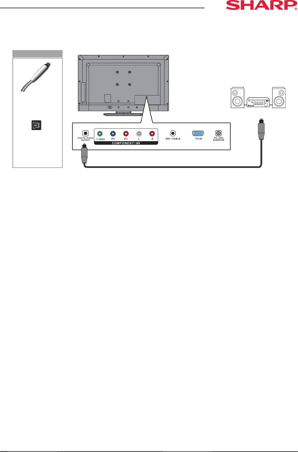 2 Connect a digital optical audio cable (not provided) to the DIGITAL AUDIO OUTPUT jack on the back of your TV