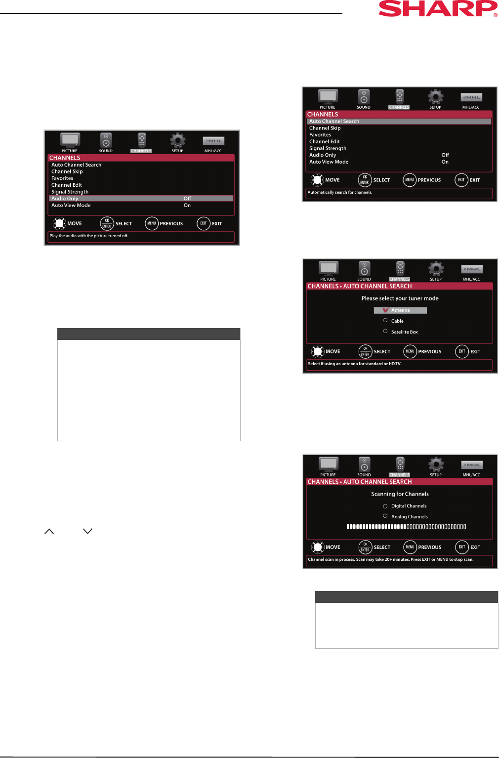 To automatically scan for channels: