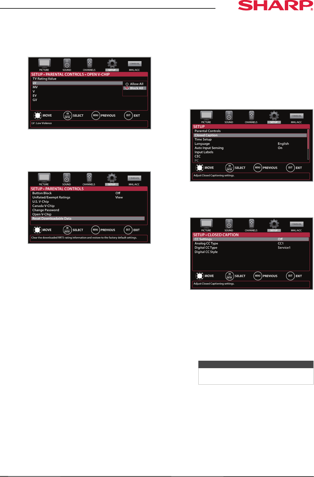 ENTER. The SETUP · PARENTAL CONTROLS menu