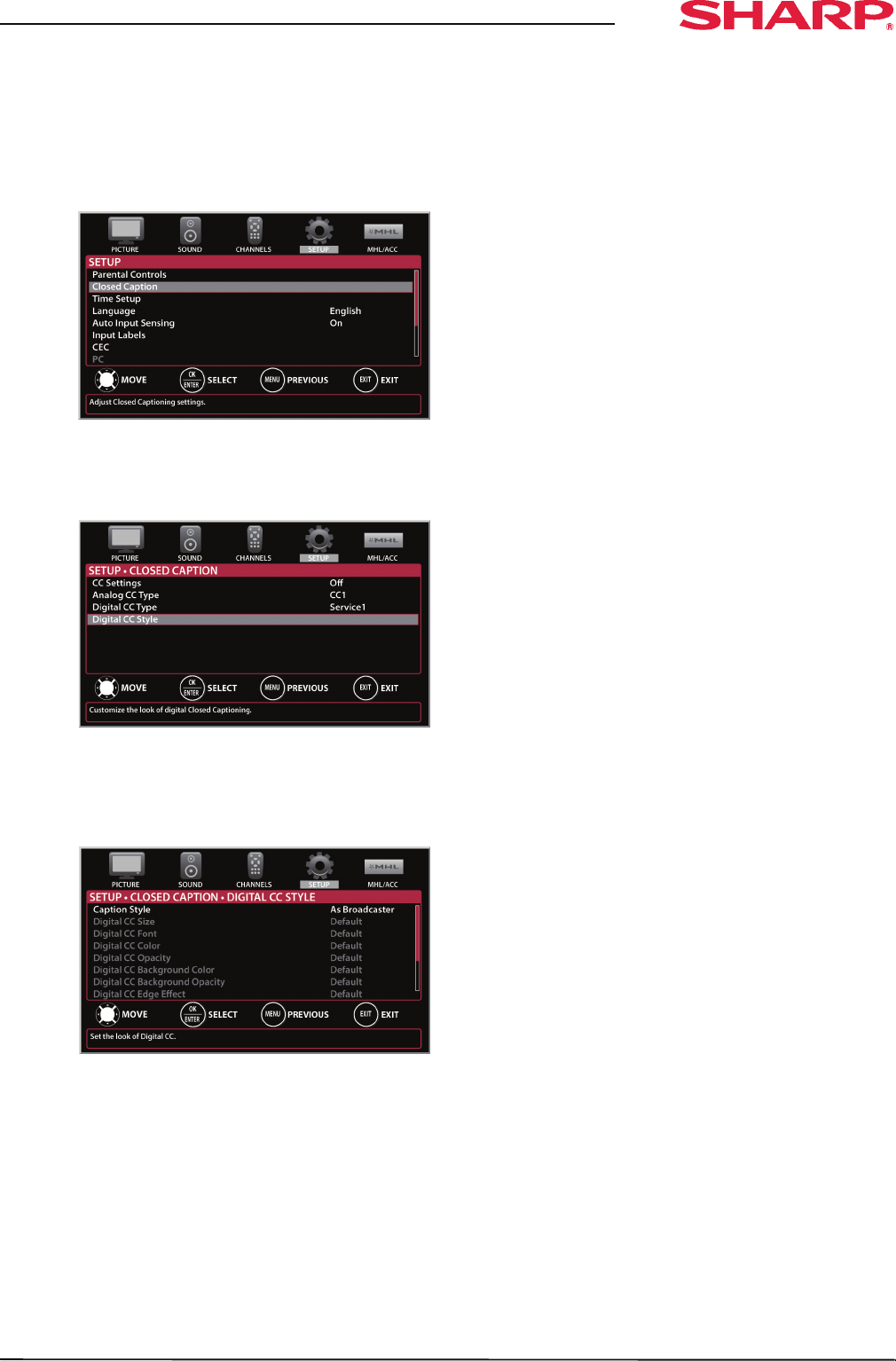 • Digital CC Opacity—Selects the opacity level
