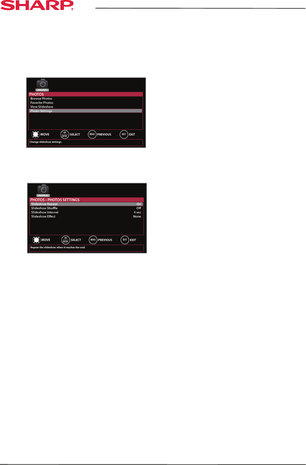 press ENTER. The PHOTOS · PHOTOS SETTINGS