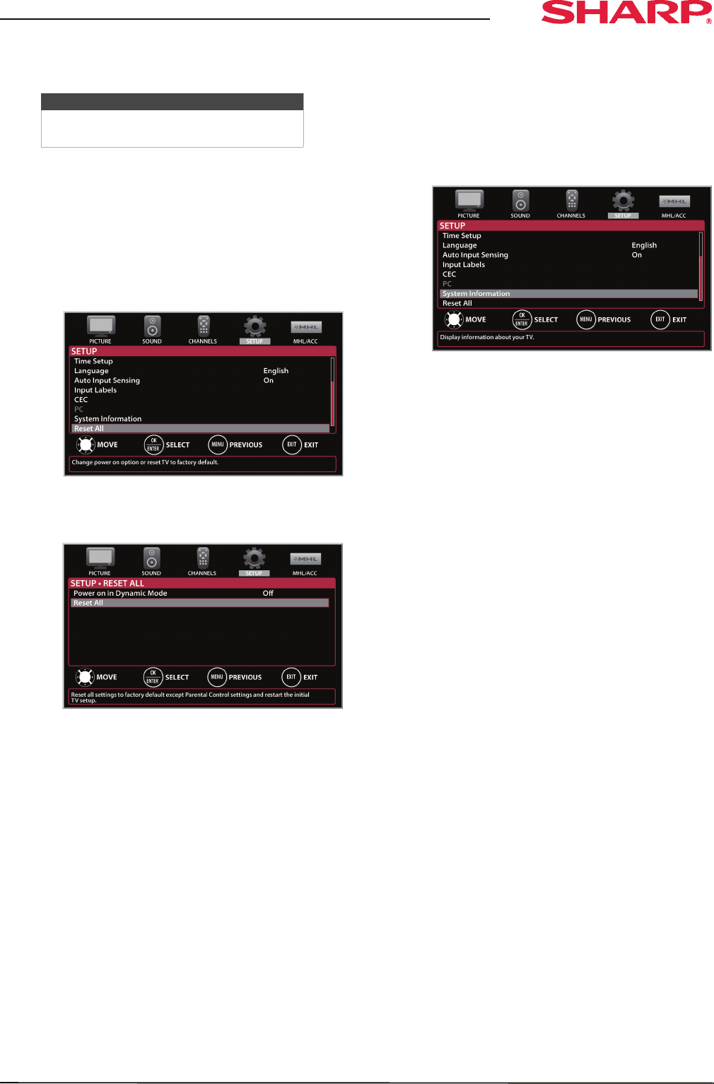 then press ENTER. Information about the TV