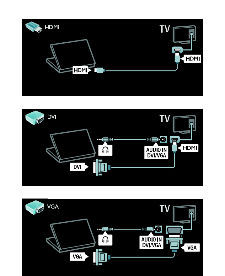 Connect the computer with a VGA cable and an audio cable to the TV.