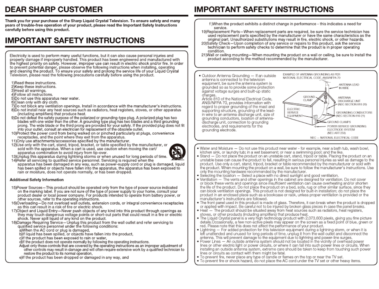 TV a LED Sharp LC-70UD1U Istruzioni per gli Interventi