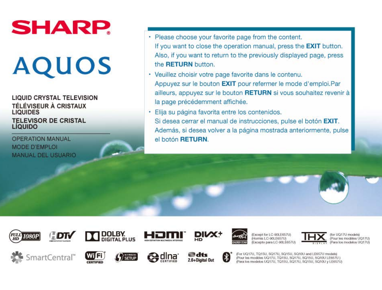>><<ContentsENG Contents1. Part Names1-1. TV1-2. Remote Control Unit2. Watching TV2-1. Displaying an External Equipment Image2-2. Initial