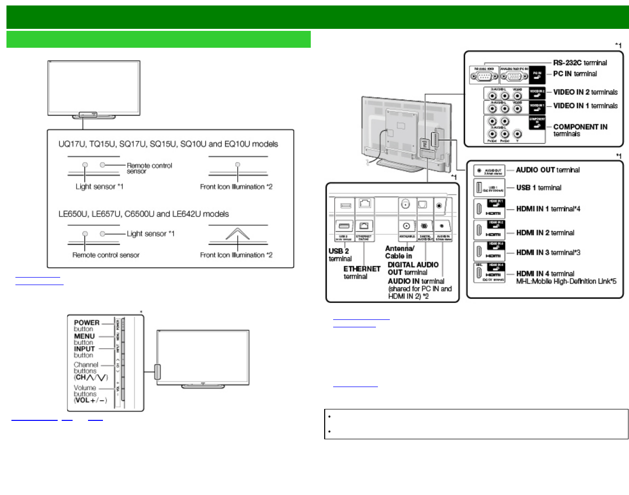 The examples used throughout this manual are based on the LC-60LE650U model.