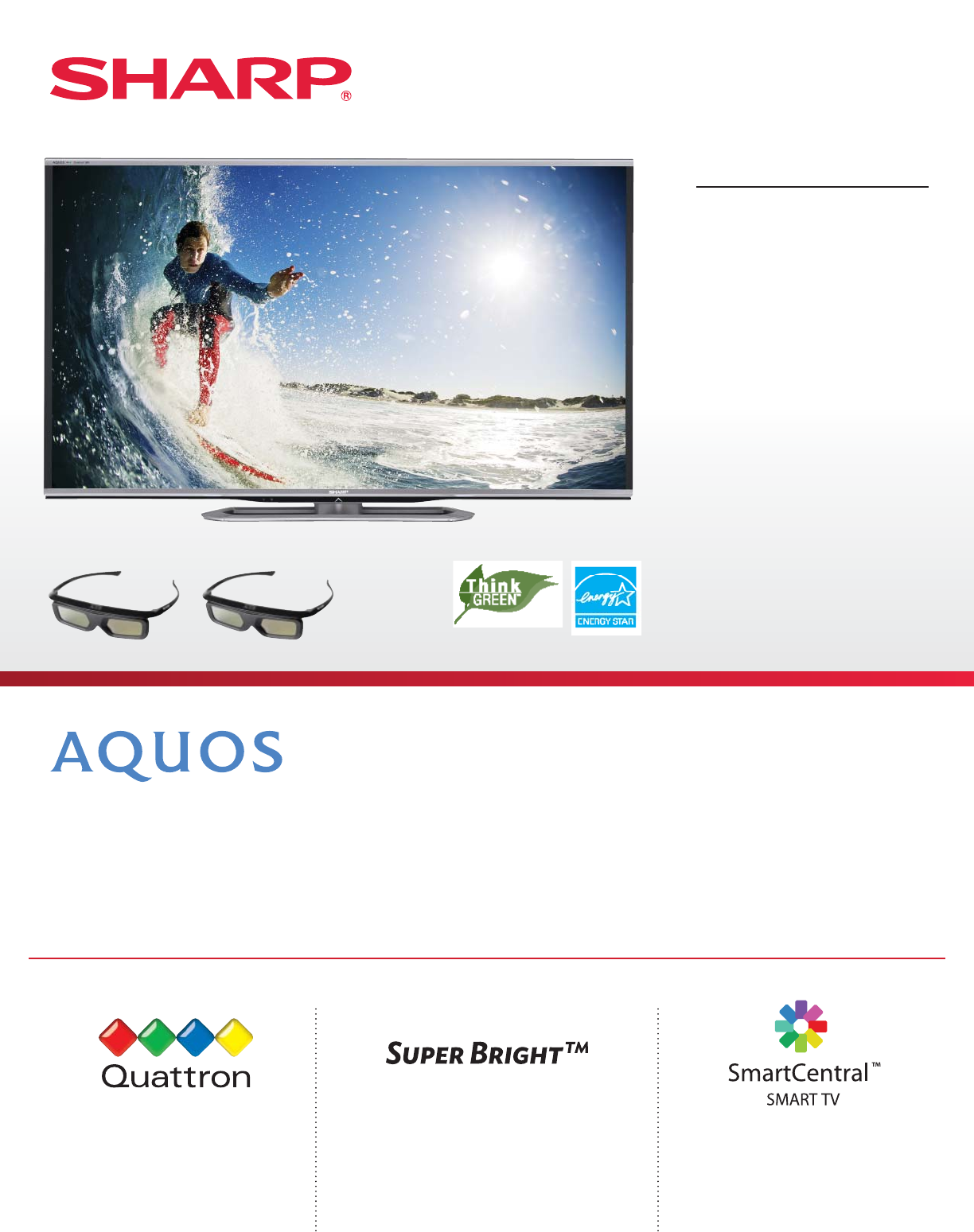 TV that features Sharps proprietary Quattron color technology for a billion more colors, so