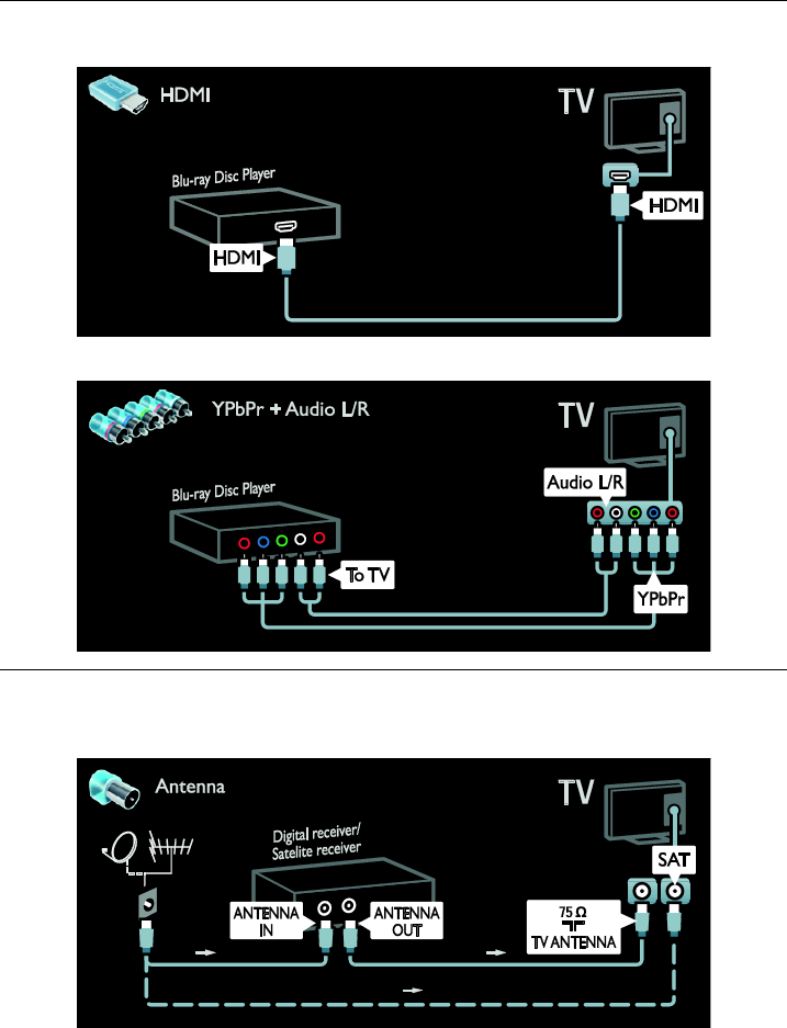 Connect the satellite or digital TV receiver with an antenna cable to the TV. (SAT is available on