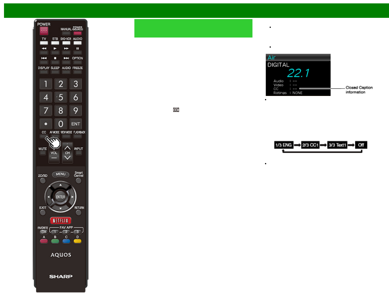 If the last closed caption mode (e.g. 1/3 ENG) you