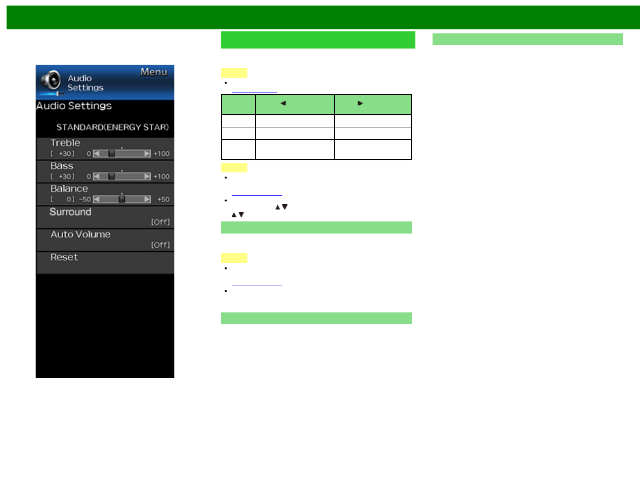 For resetting Audio adjustment items to the factory preset