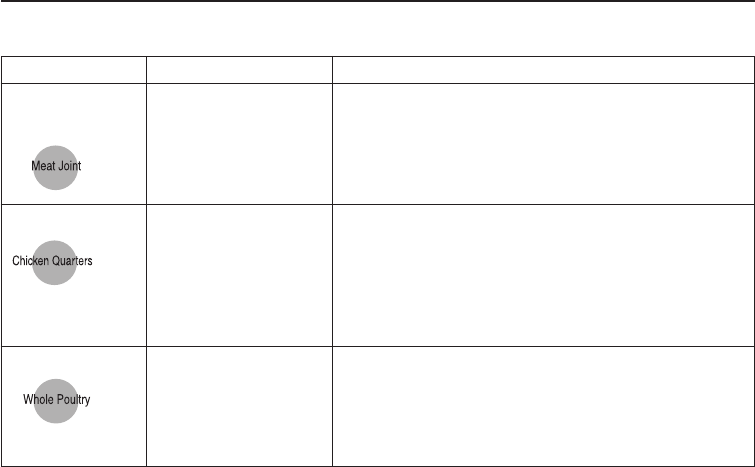 • To cook/defrost weights or foods not included in these charts, please refer to the charts in the