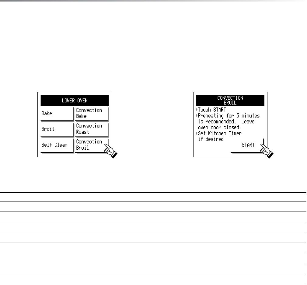 See the Convection Broiling Chart below for suggested foods and times.