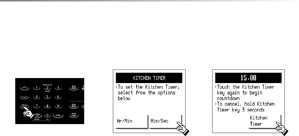 TO CANCEL, TOUCH AND HOLD KITCHEN TIMER PAD FOR 3 SECONDS.