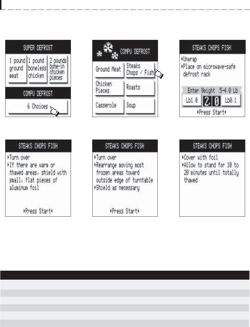 CompuDefrost automatically defrosts all the foods found in the COMPU DEFROST chart below.