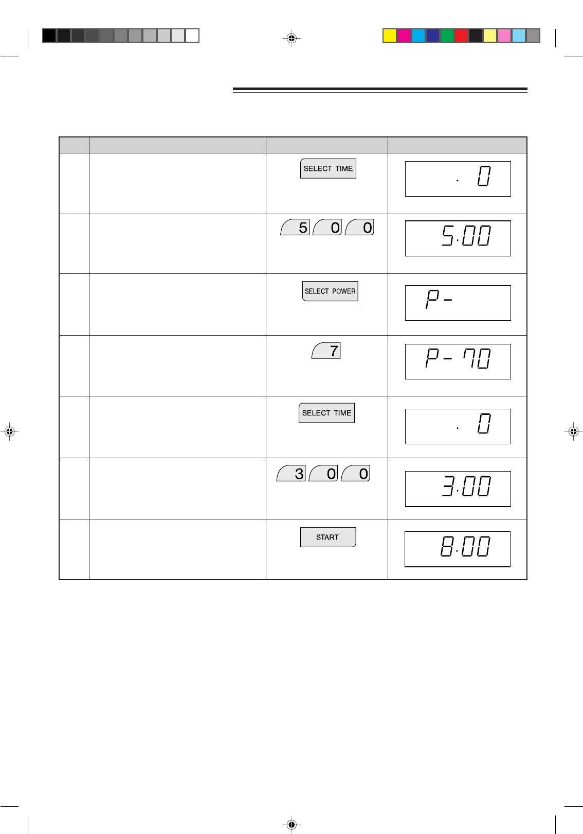 Example: If you want to cook for 5 minutes on 70% followed by 3 minutes on 100%