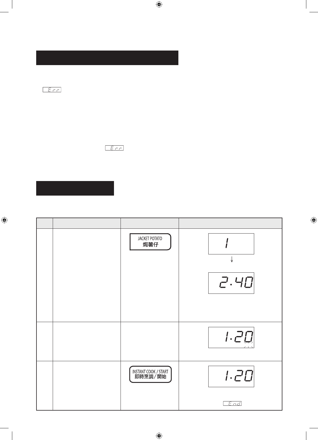 Nếu bạn không làm đúng theo chỉ dẫn, thức ăn có thể quá nhừ hoặc chưa chín hoặc màn hình sẽ hiển thị tín hiệu