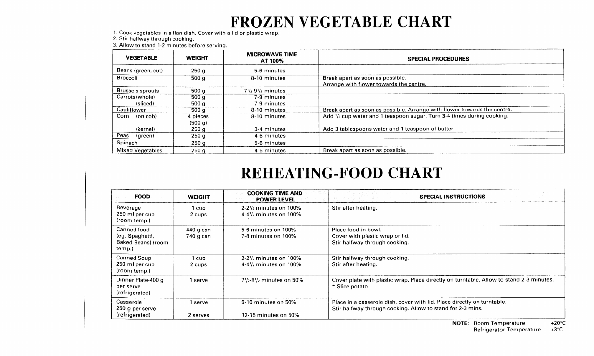 REHEATING-FOOD CHART
