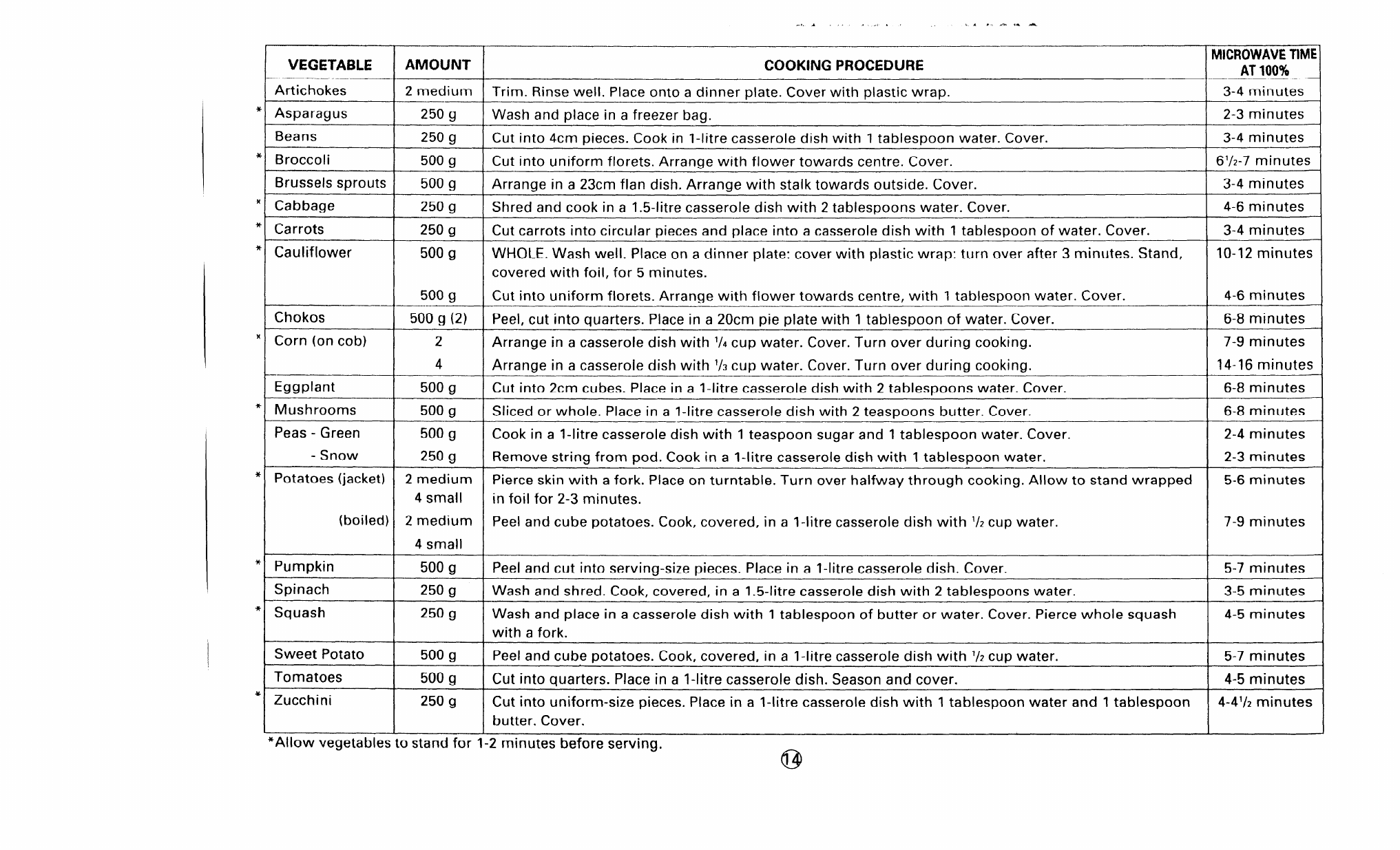 *Allow vegetables to stand for l-2 minutes before serving.