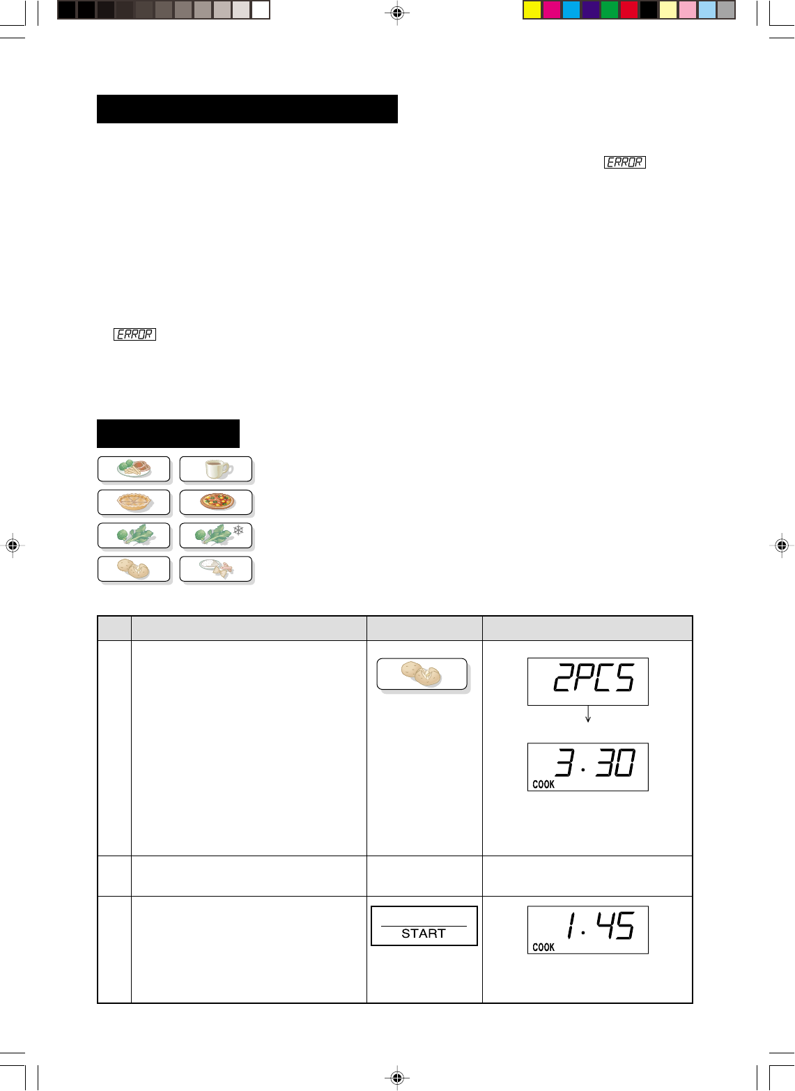 2. Food weighing more or less than the quantity or weight listed in each MENU GUIDE, cook manually.
