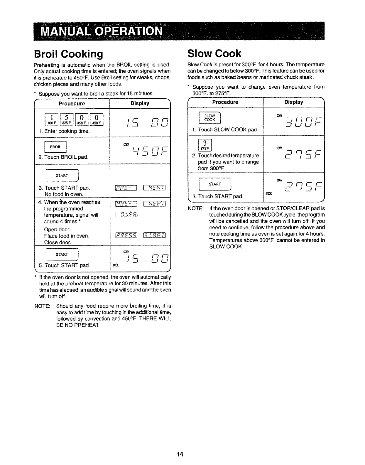 it ispreheated to 450aF,, Use Broil setting for steaks, chops,