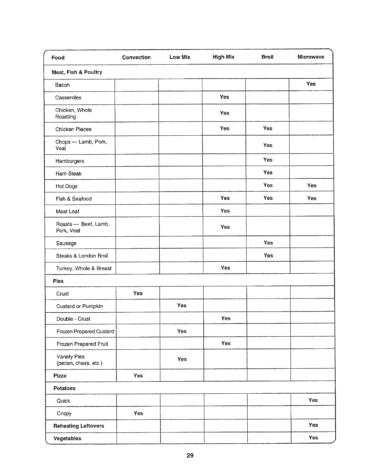 Vegetables Yes