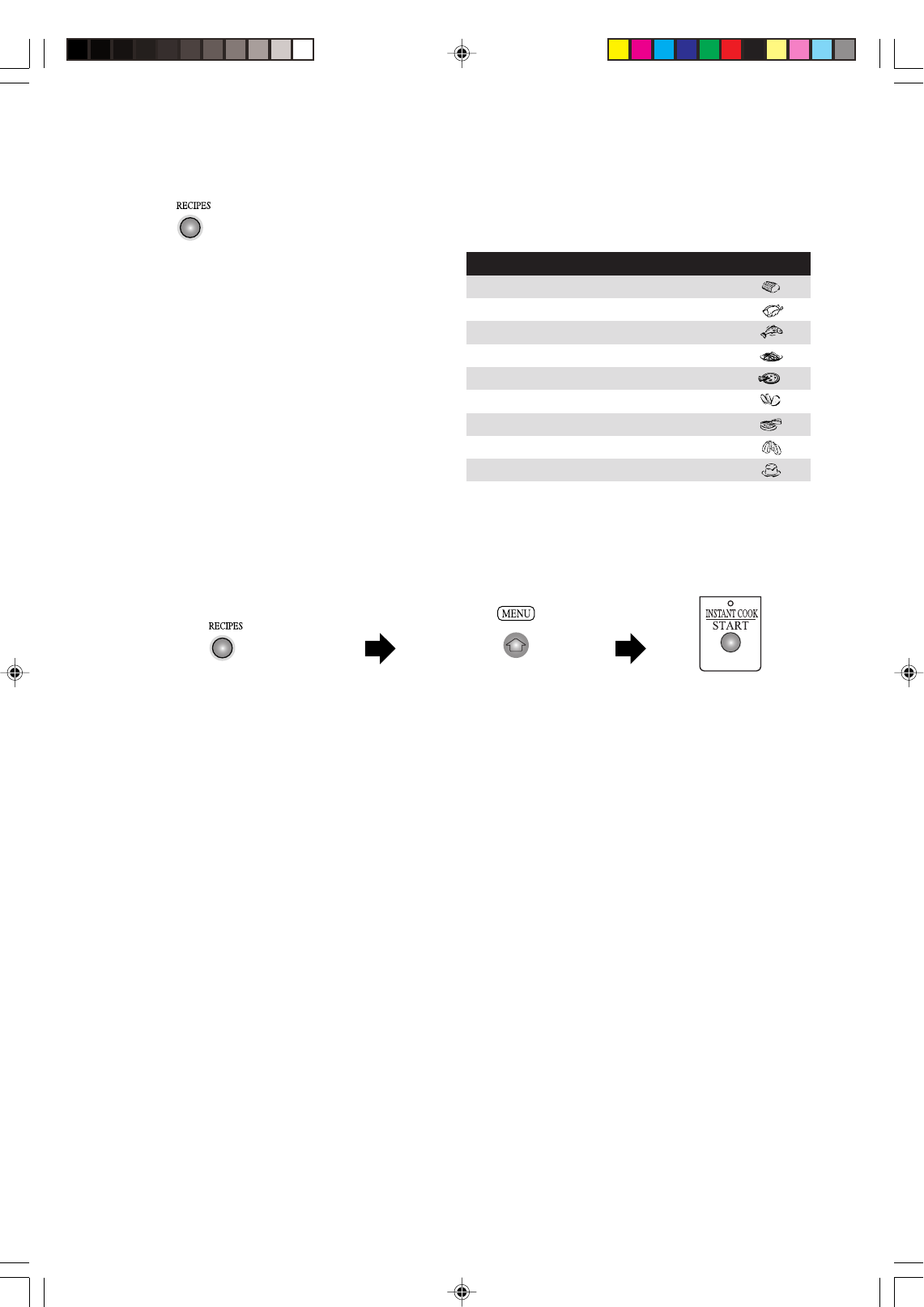 Please refer to the RECIPES MENU GUIDE