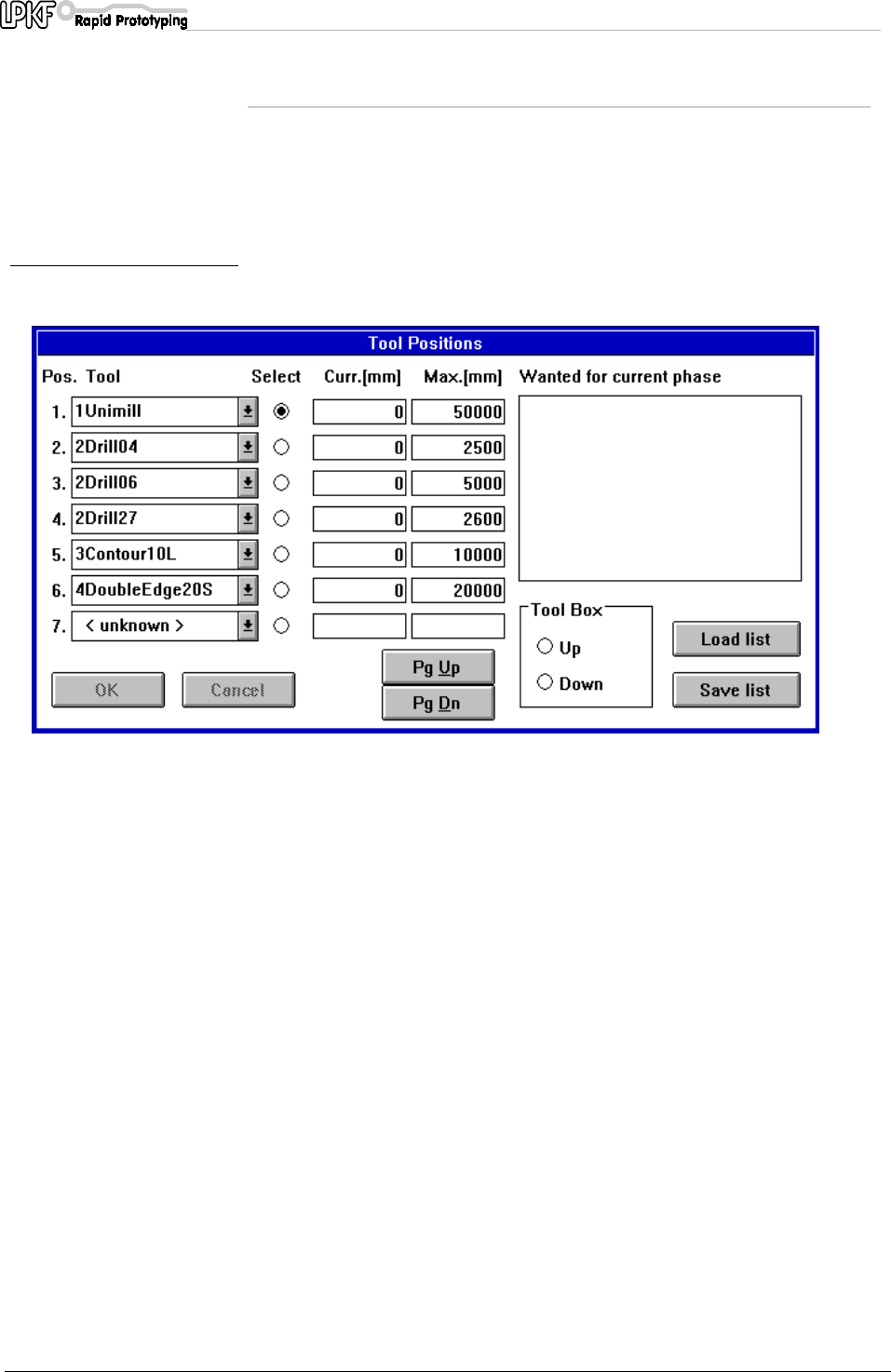 dialogue box. Left-clicking selects the tool for manual changing. Various