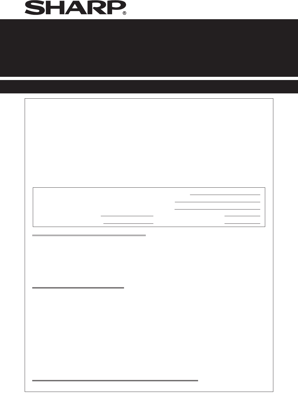 EN-31TINSEB154WRRZ-D81 Printed in ThailandImprimé en ThaïlandeImpreso en Tailandia2008.3SHARP ELECTRONICS CORPORATIONSharp Plaza, Mahwah, New Jersey