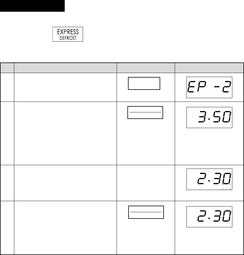 EXPRESS DEFROST rapidly defrosts 0.5 kg specific