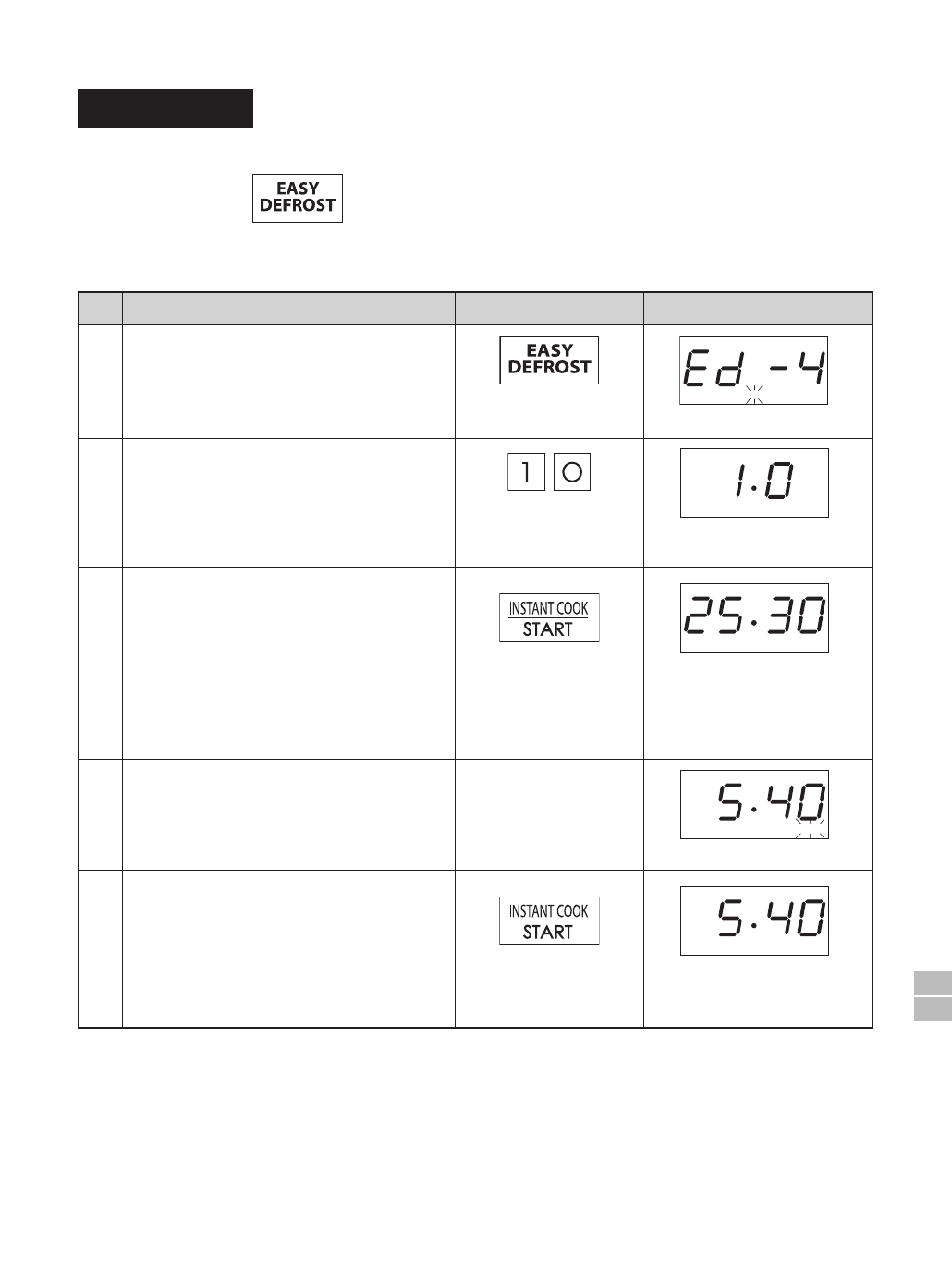 Press the EASY DEFROST pad until the