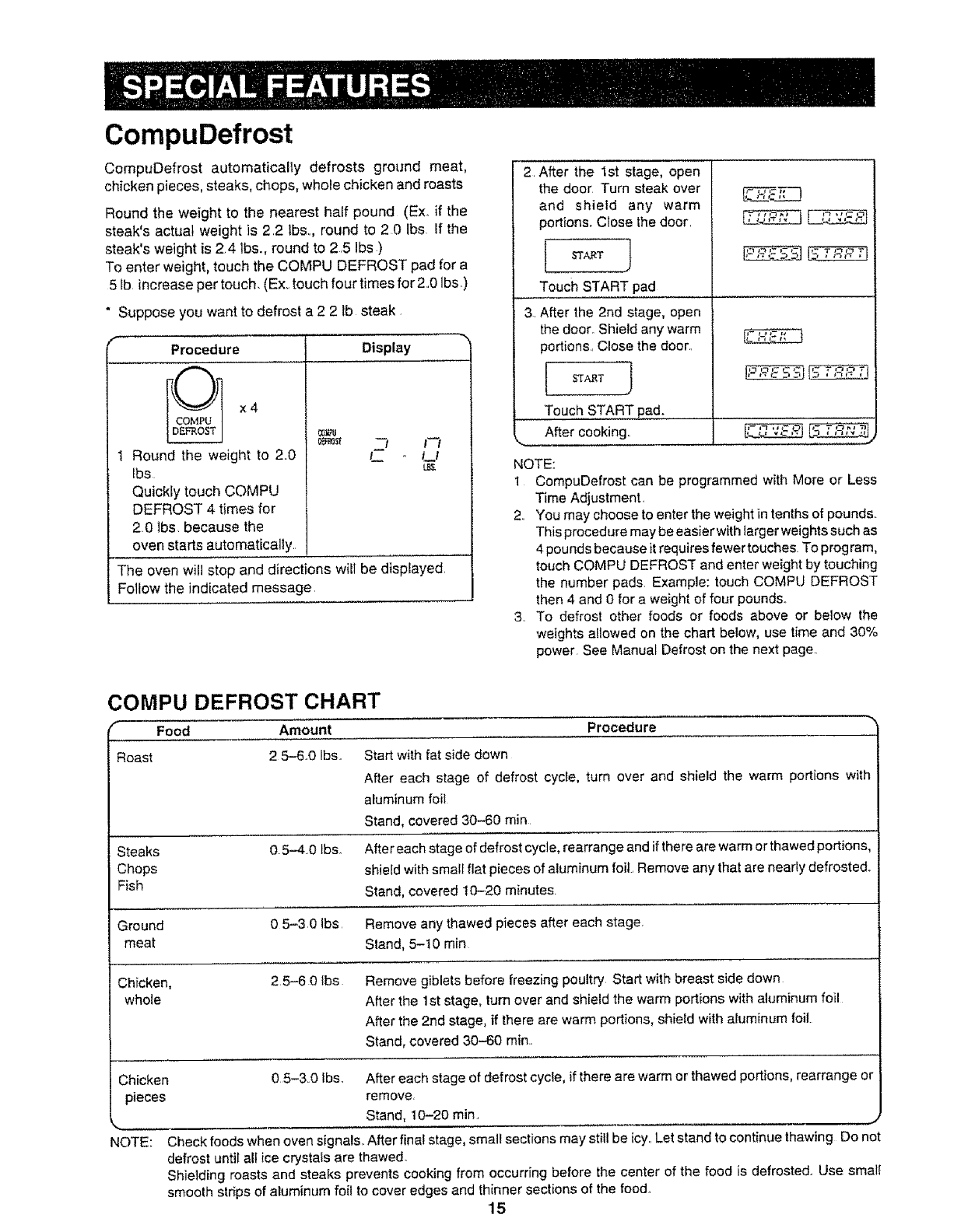 Steaks 0 5-4.0 Ibs., After each stage of defrost cycle, rearrange and ifthere are warm or thawed portions,
