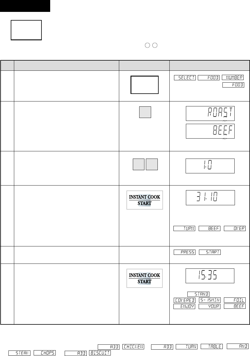 Press 1 to cook Roast Beef.