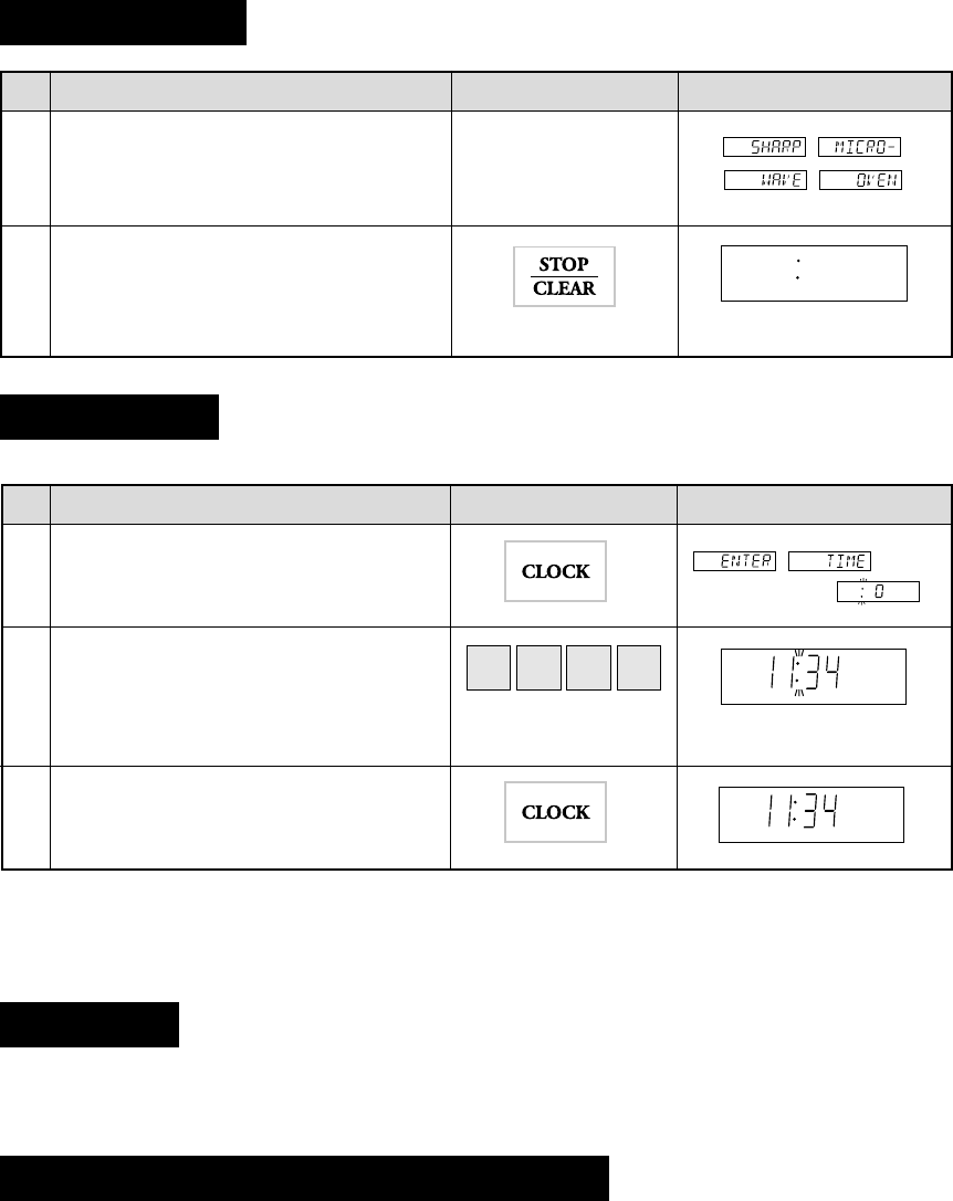 If you wish to know the time of day during the cooking, auto start or timer mode, press the CLOCK pad. As long