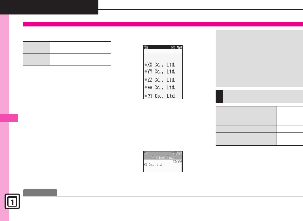 0(Scanning and pasting during text entry (Scanning more text (Saving scan results (Saving linked info to Phone Book (Opening saved
