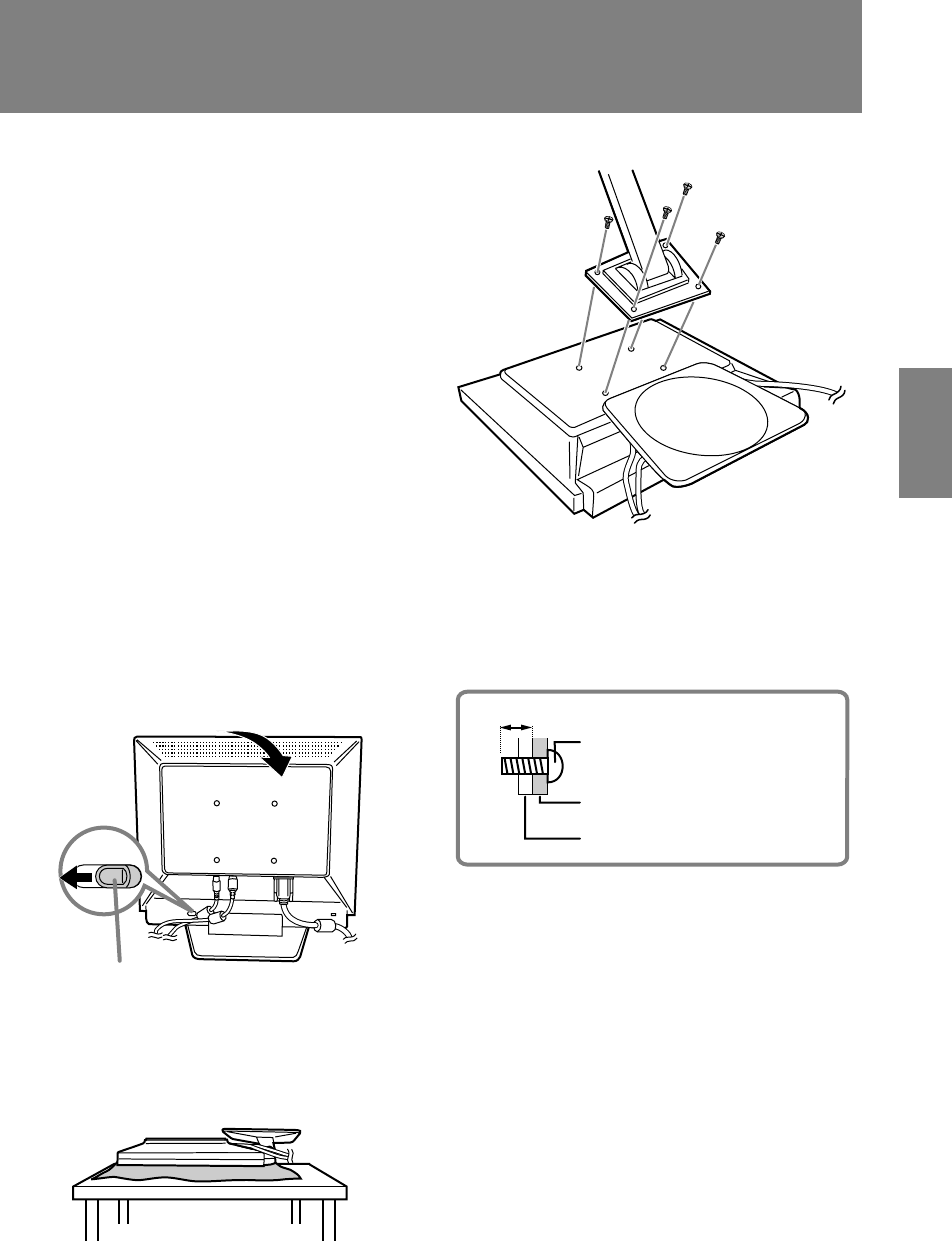 6.Fixer le bras au moniteur à l’aide des quatre vis.