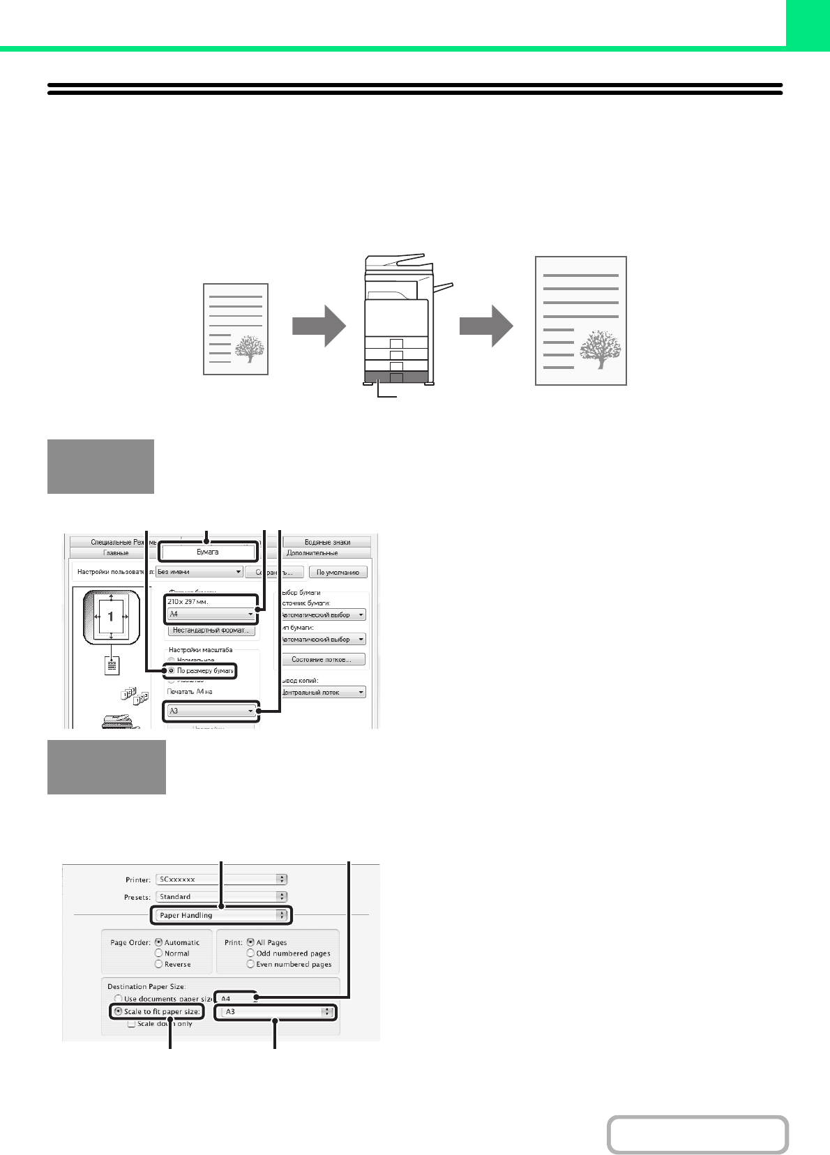 В следующем примере показано, как печатать документ формата A4 на бумаге формата A3.