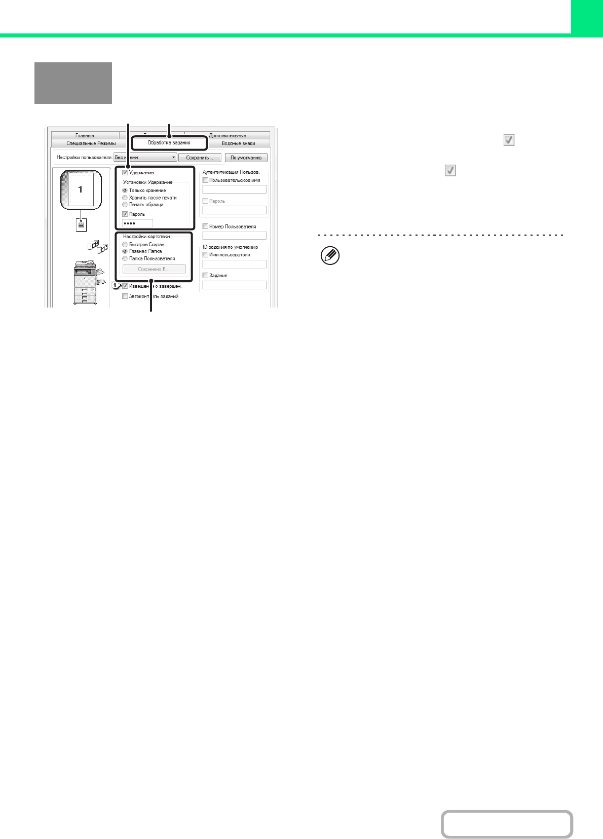 Щелкните на закладке [Обработка задания].